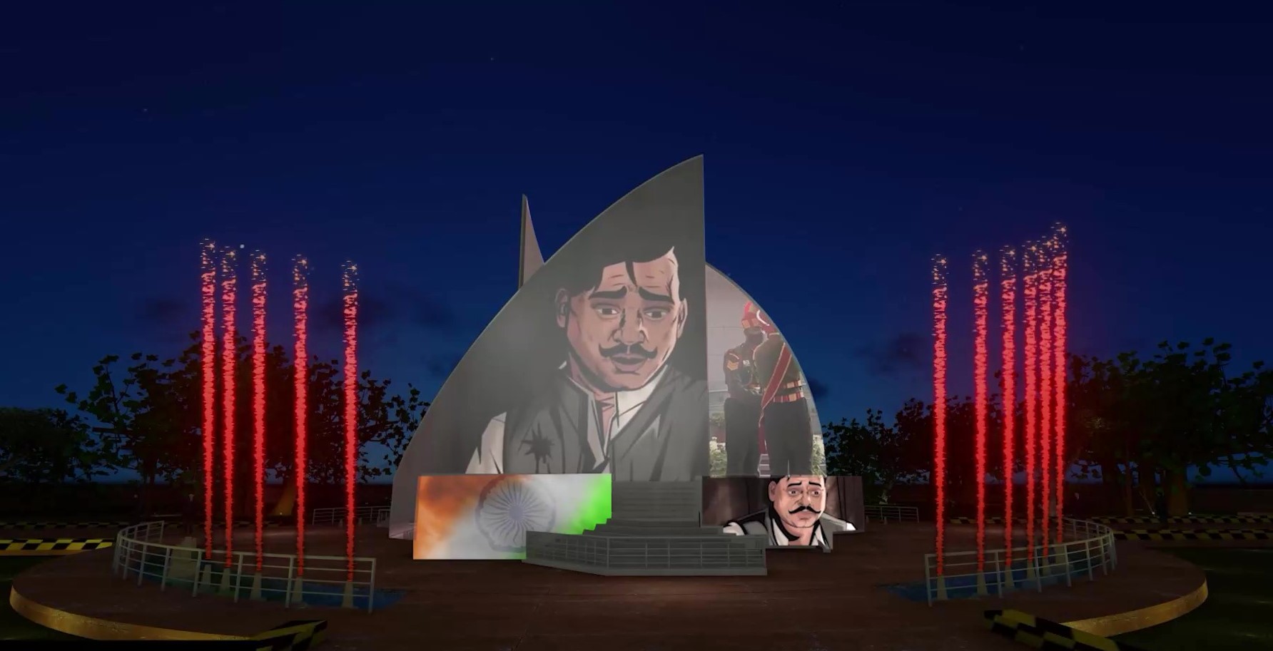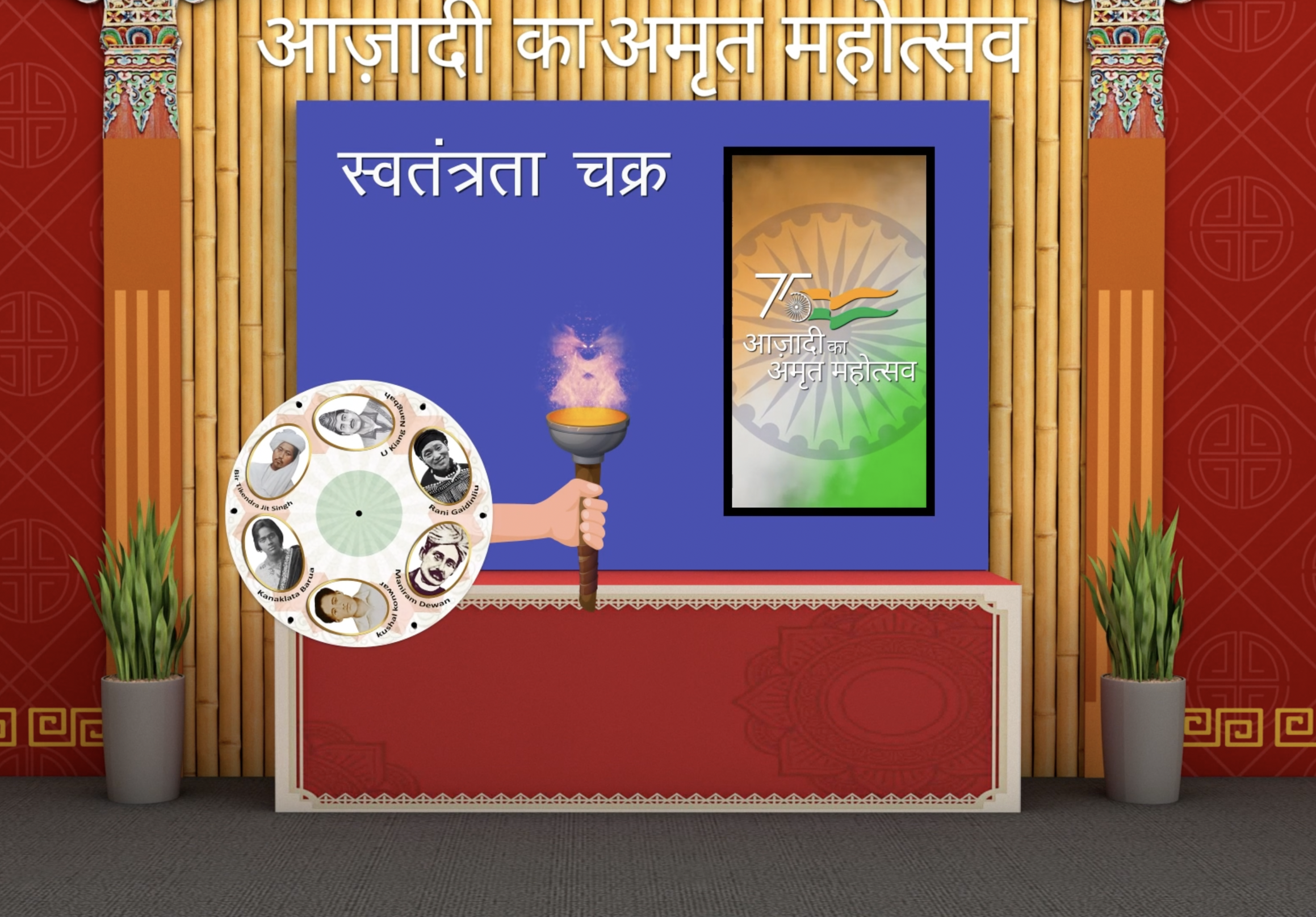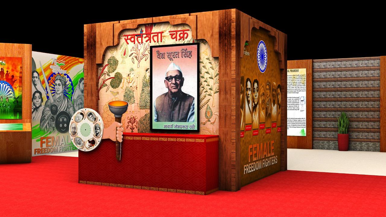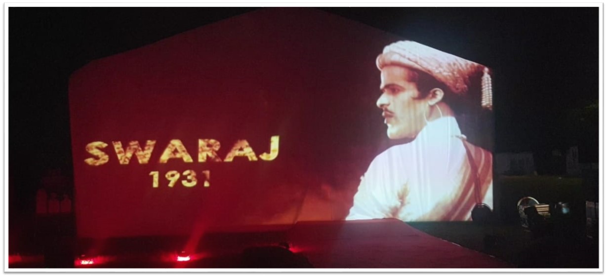 A 360 DEGREE 360° Immersive Experience THEATRE was created, in which visitors could see themselves standing on the battlefield alongside Rani Lakshmibai and the British. Similarly, other technologies like concept of real voices of freedom fighters in SOUND SHOWER, playing of freedom stories through foot sensor, moving motion posters of freedom struggle cinema with KNOB ROTATION, knowing the history of independence in FLIP BOOK etc.